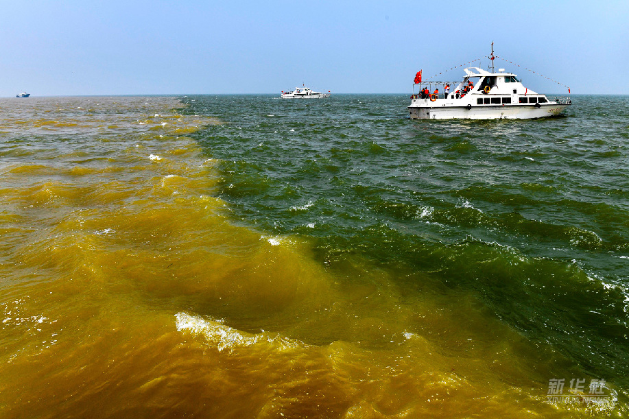 黄河汇入渤海,形成独特的水面分界现象(2021年5月13日摄)。