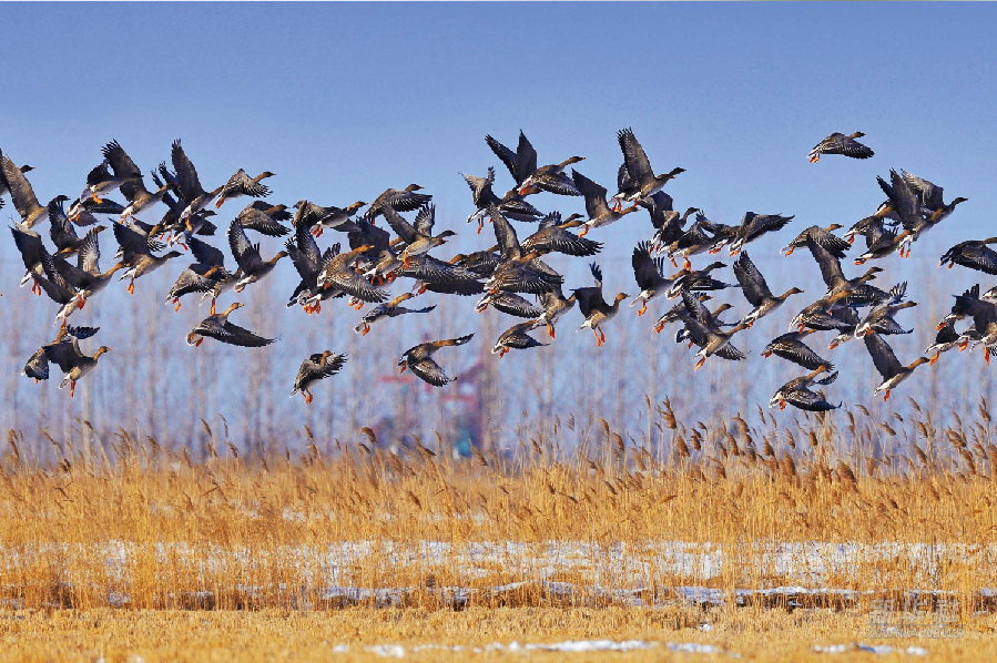 在自然保护区里拍摄的豆雁群(资料照片)。