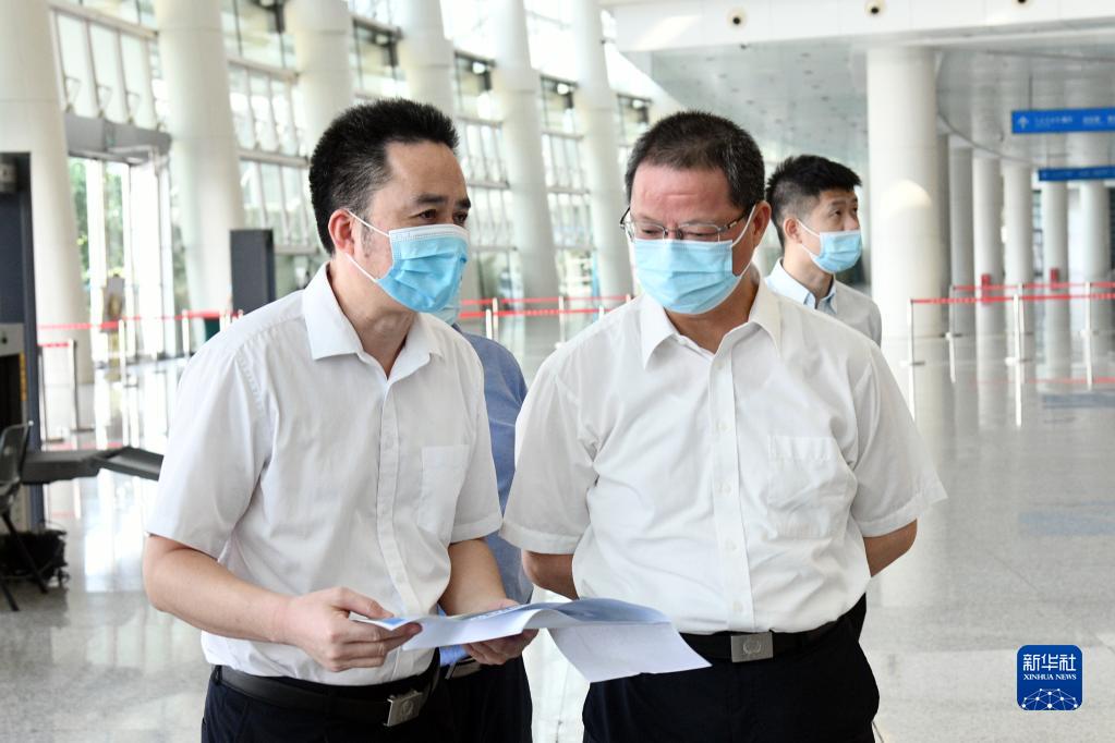 潘东升(前右)督导检查重要会议安保工作(2021年9月23日摄)。新华社发(福州市公安局供图)