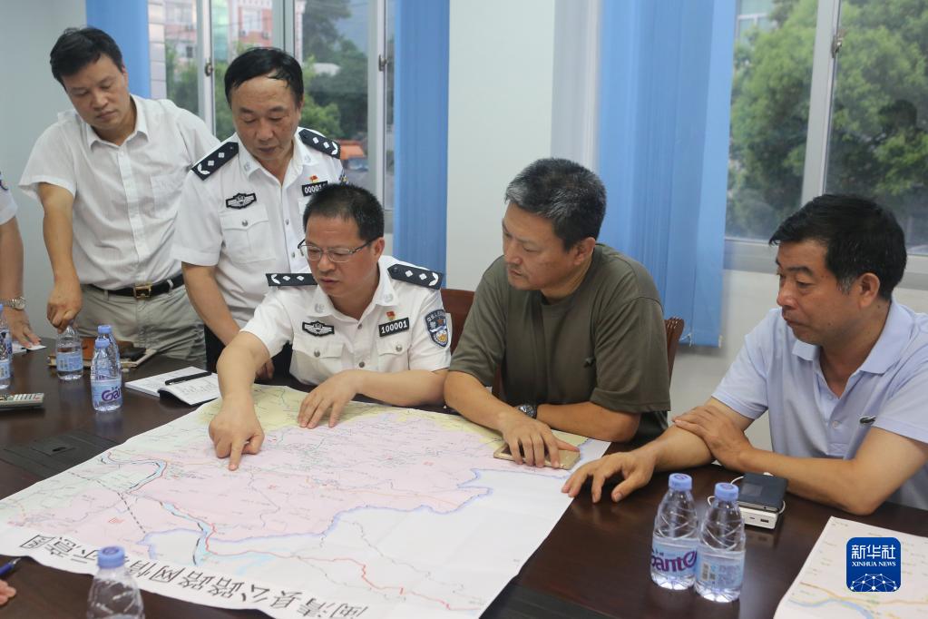潘东升(中)在闽清指导防抗台风“尼伯特”(2016年7月12日摄)。新华社发(福州市公安局供图)