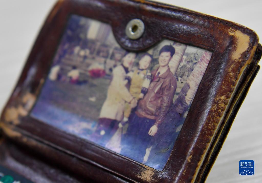 潘东升使用多年的钱包里面珍藏着多年前一家人的合影(2021年10月16日摄)。新华社发(福州市公安局供图)