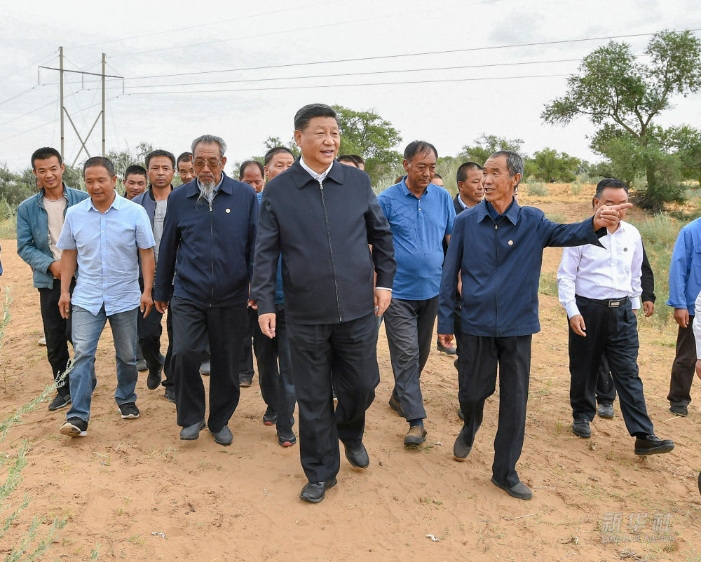 ↑2019年8月21日,习近平在甘肃省武威市古浪县八步沙林场察看林场整体风貌,听取武威市防沙治沙整体情况汇报和八步沙林场“六老汉”三代人治沙造林的感人事迹。