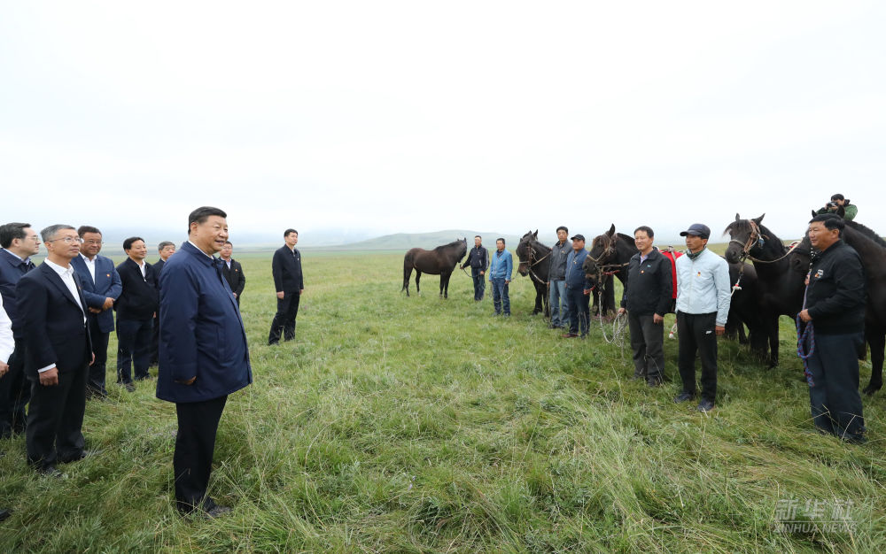 ↑2019年8月20日,习近平在甘肃省张掖市山丹县山丹马场考察调研,了解祁连山生态环境修复保护等情况。