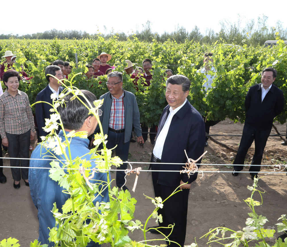 ↑2020年6月9日,习近平在宁夏回族自治区银川市贺兰山东麓葡萄种植园,了解加强贺兰山生态保护情况。