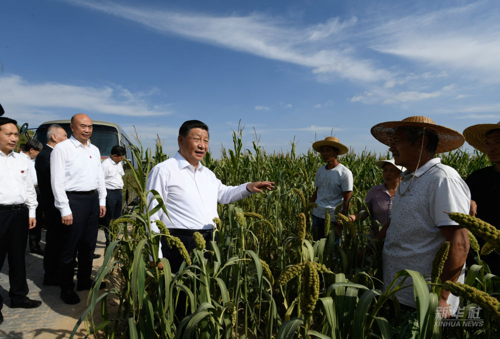 ↑2021年9月13日,习近平在陕西省榆林市米脂县银州街道高西沟村临时下车,察看粮食作物长势,同正在田间劳作的老乡拉家常,询问他们生产经营、家庭收入、医疗保障、子女上学就业等情况。