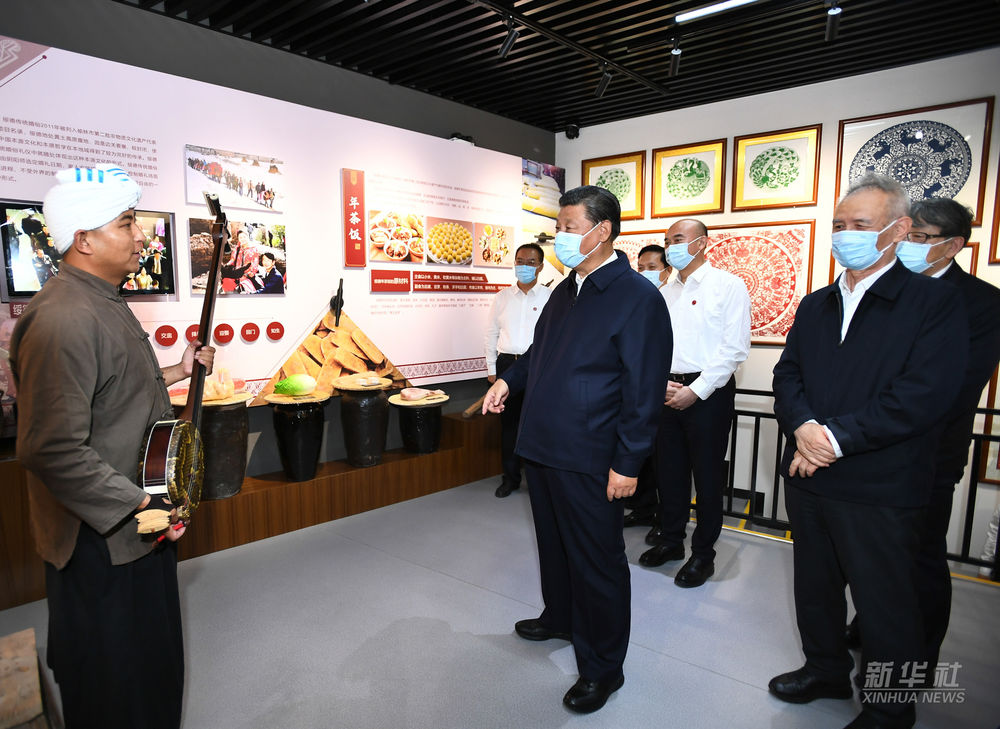 ↑2021年9月14日,习近平在陕西省榆林市绥德县非物质文化遗产陈列馆,围绕推进传统文化保护与传承等实地调研。
