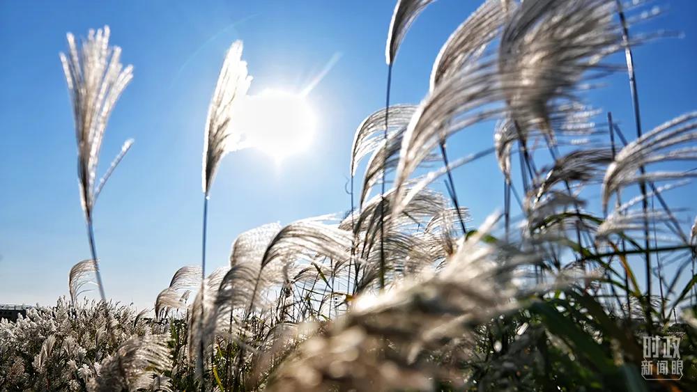 △黄河口湿地,成片芦花随风摆动。(总台央视记者程铖拍摄)