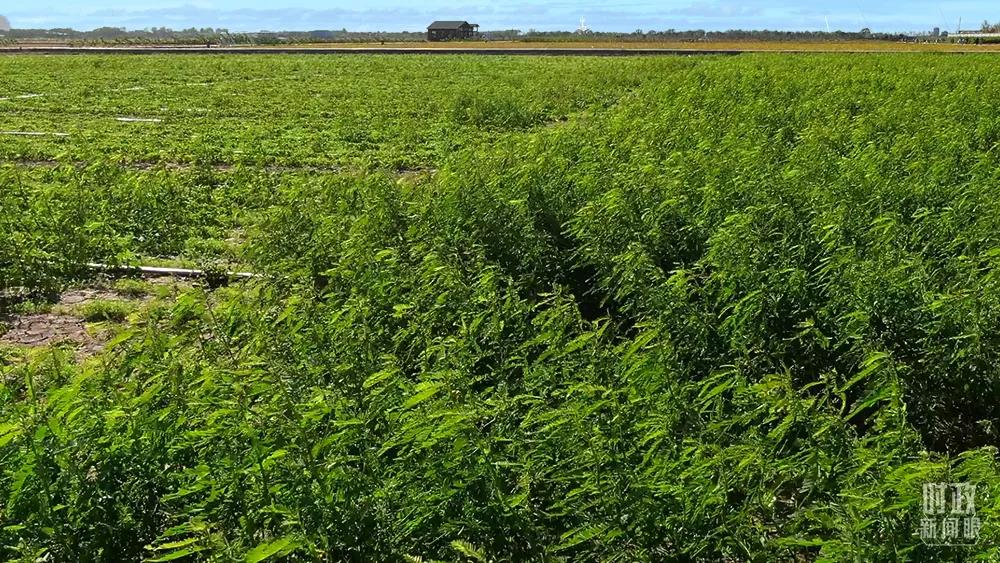 △黄河三角洲农高区。田菁是耐盐碱绿肥作物,能够促进盐碱地用养结合。(总台记者韩森拍摄)
