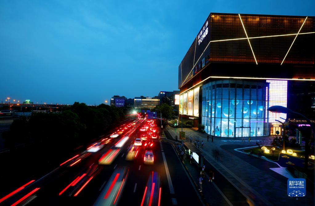 这是从连接虹桥商务区和虹桥交通枢纽的人行天桥上俯瞰虹桥商务区(2020年9月10日摄)。新华社记者 方喆 摄