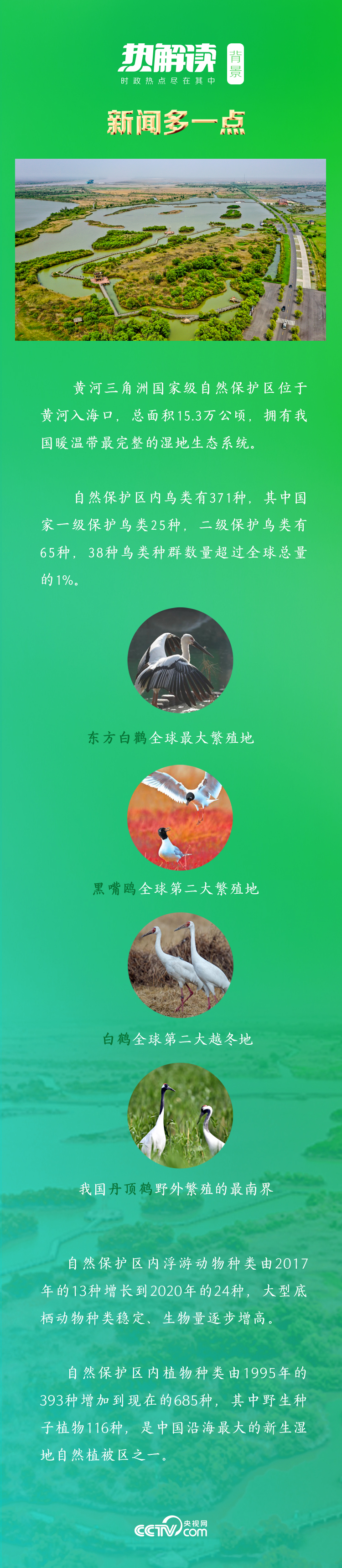 今日的黄河三角洲自然保护区生物多样性更加丰富,野生动物、植物分别达到1630种、685种。全球首批“国际湿地城市”的称号,是对东营市保护和修复黄河流域生态环境的褒奖。