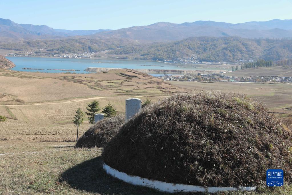 这是10月23日在朝鲜咸镜南道西北部长津湖畔拍摄的长津邑中国人民志愿军烈士合葬墓地。新华社记者 江亚平 摄