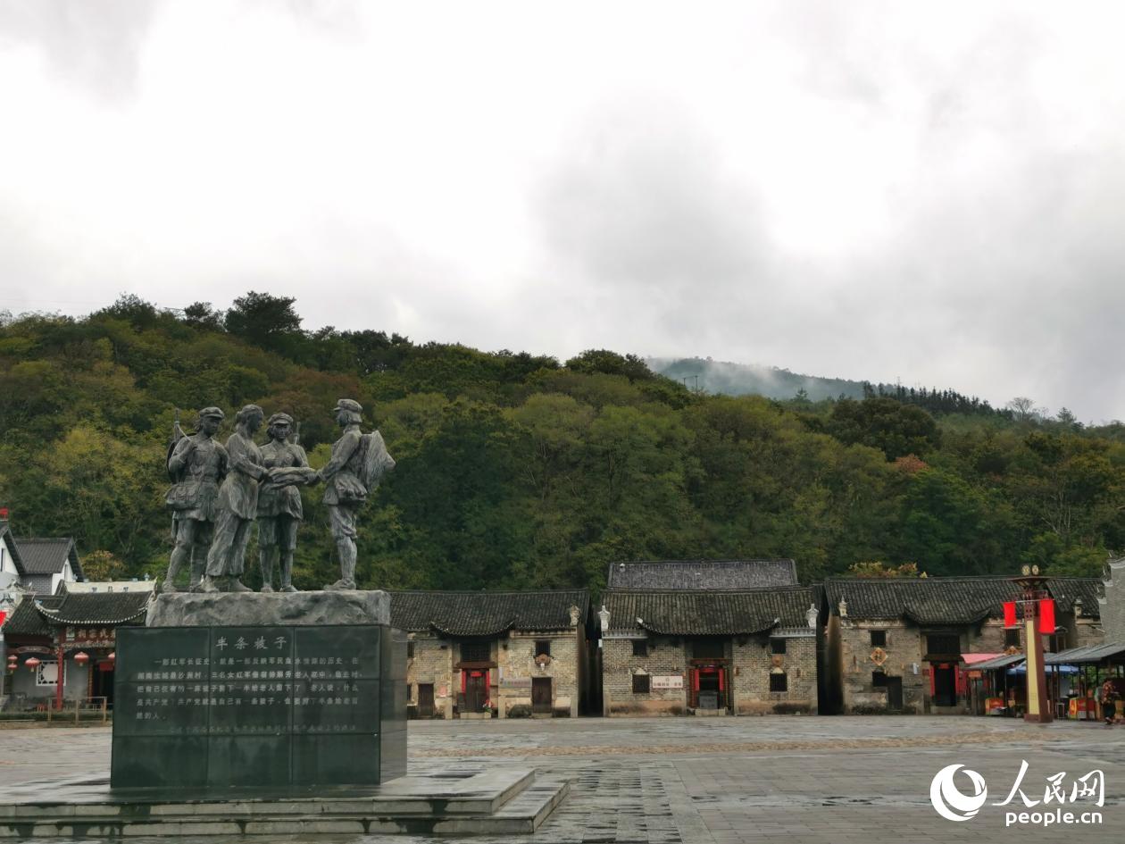 民俗广场的雕塑再现赠被场景。人民网 李芳森摄