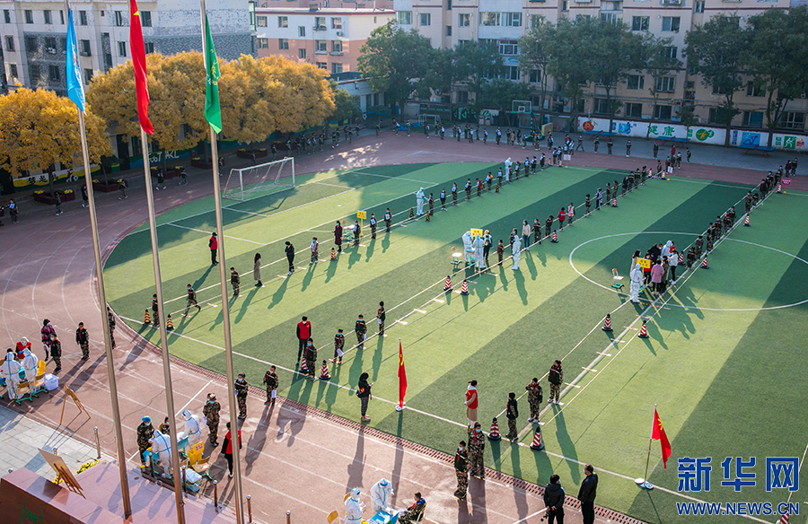 10月29日,在内蒙古呼和浩特玉泉区各核酸检测点,医护工作者、机关下派党员、街道社区干部、网格员、居民志愿者等现场工作人员高效协作,有序引导市民进行采样。从当日早8点开始,到30日中午12点,呼和浩特在重点区域有序开展第二轮大规模核酸检测,各项工作正在迅速高效进行中。