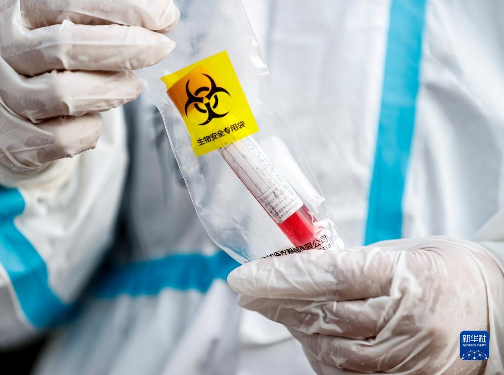 10月28日,在银川市兴庆区一处隔离小区,医务人员将采集的核酸样本进行封存。新华社记者 冯开华 摄