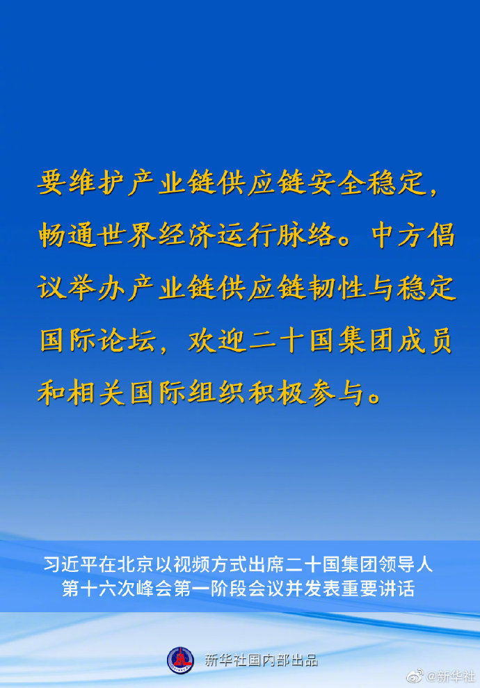 习近平主席在二十国集团领导人第十六次峰会第一阶段会议上的重要讲话要点速览