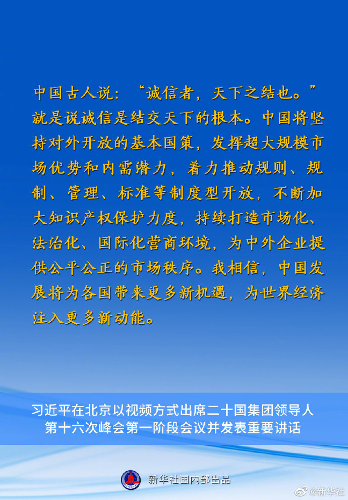 习近平在二十国集团领导人第十六次峰会第一阶段会议上的讲话