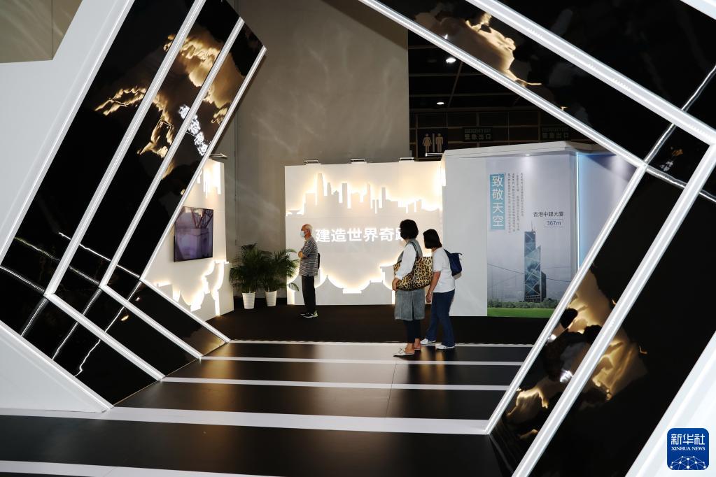 在香港会展中心,市民观看大国建造主题展(10月26日摄)。