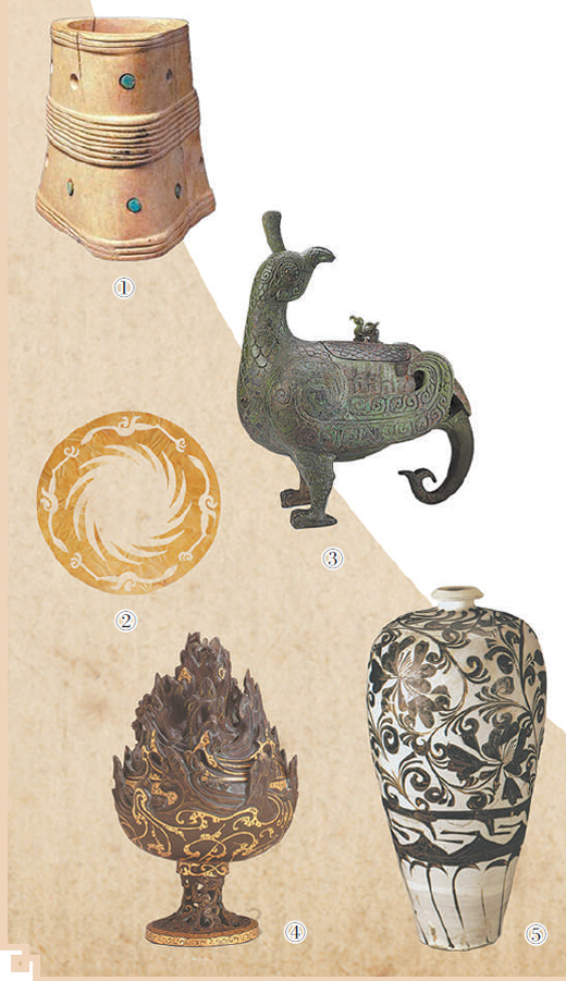 图④:河北保定市满城汉墓出土的错金铜博山炉。
