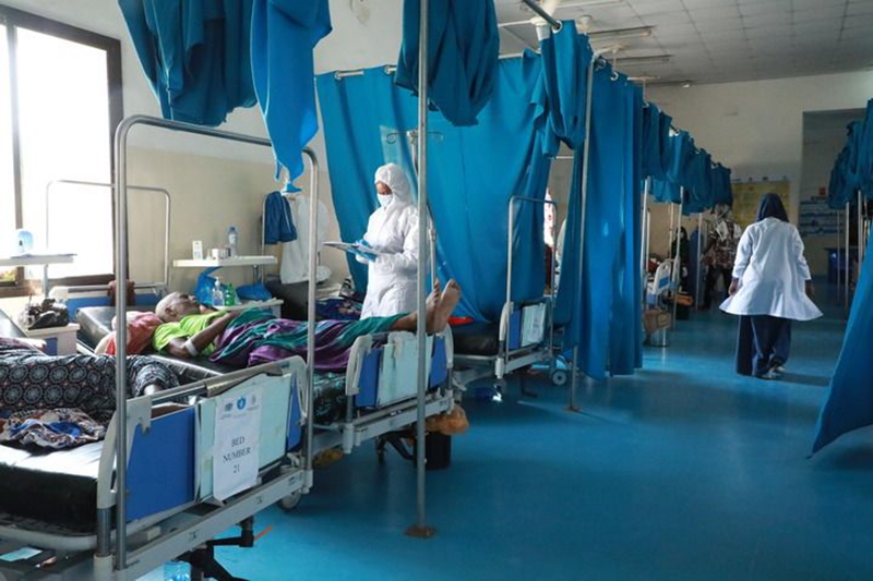 2021年2月24日,新冠患者在索马里摩加迪沙一家医院接受治疗。