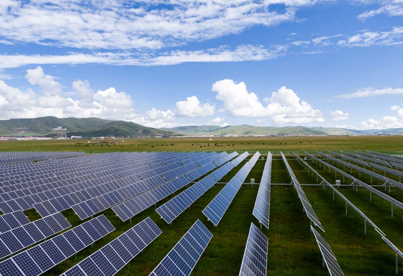 2021年8月14日拍摄的位于四川省阿坝州红原县邛溪镇麻萨村的花海光伏电站。