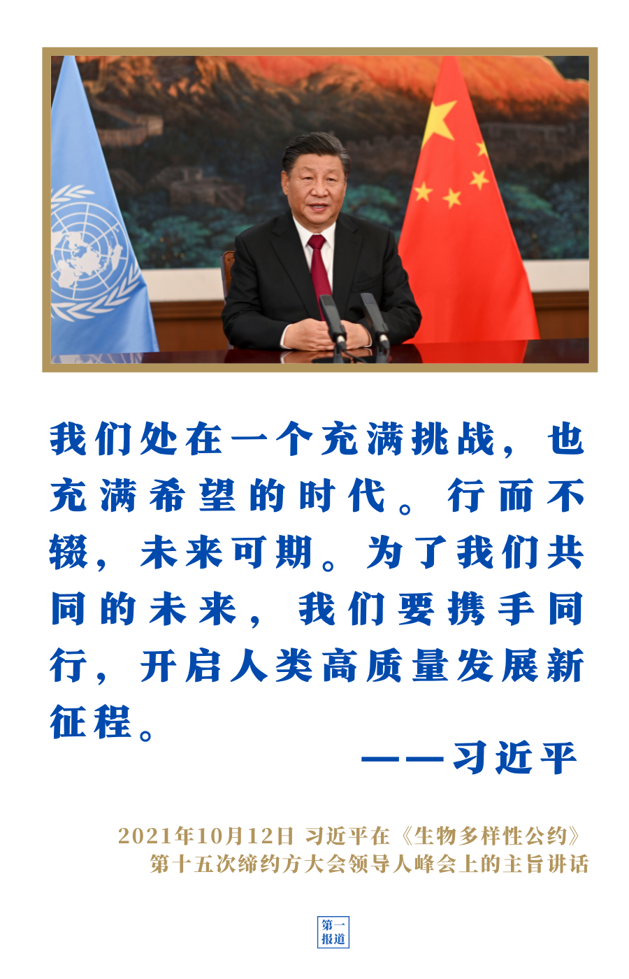 《生物多样性公约》第十五次缔约方大会上,习近平主席站在人类永续发展的高度,首次提出人类高质量发展,强调要让发展成果、良好生态更多更公平惠及各国人民。