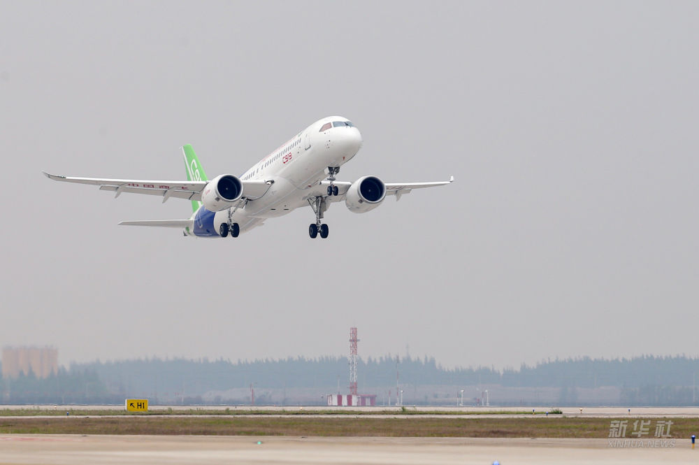 2017年5月5日,国产大型客机C919在上海浦东国际机场首飞成功。