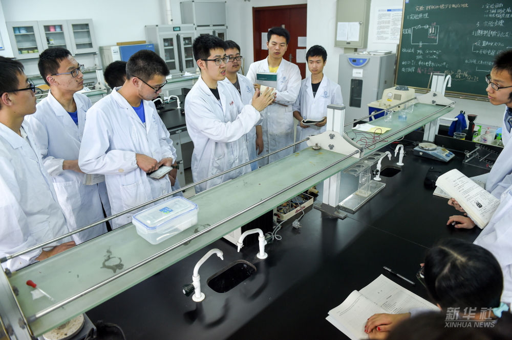 2017年5月11日,在中国科大化学物理系实验室内,学生们在上实验课。