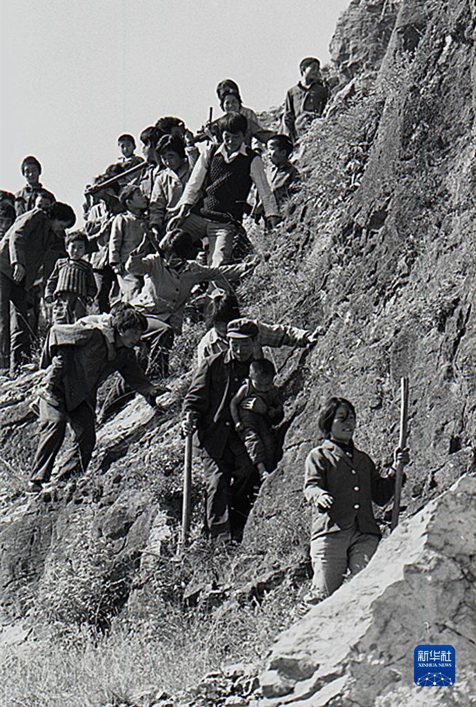 1984年,九间棚村村民在修路(资料照片)。新华社记者 王凯 摄