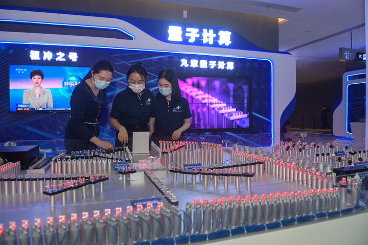 参会人员在合肥举行的2021量子产业大会上参观“九章”量子计算原型机模型(9月18日摄)。新华社记者 韩旭 摄