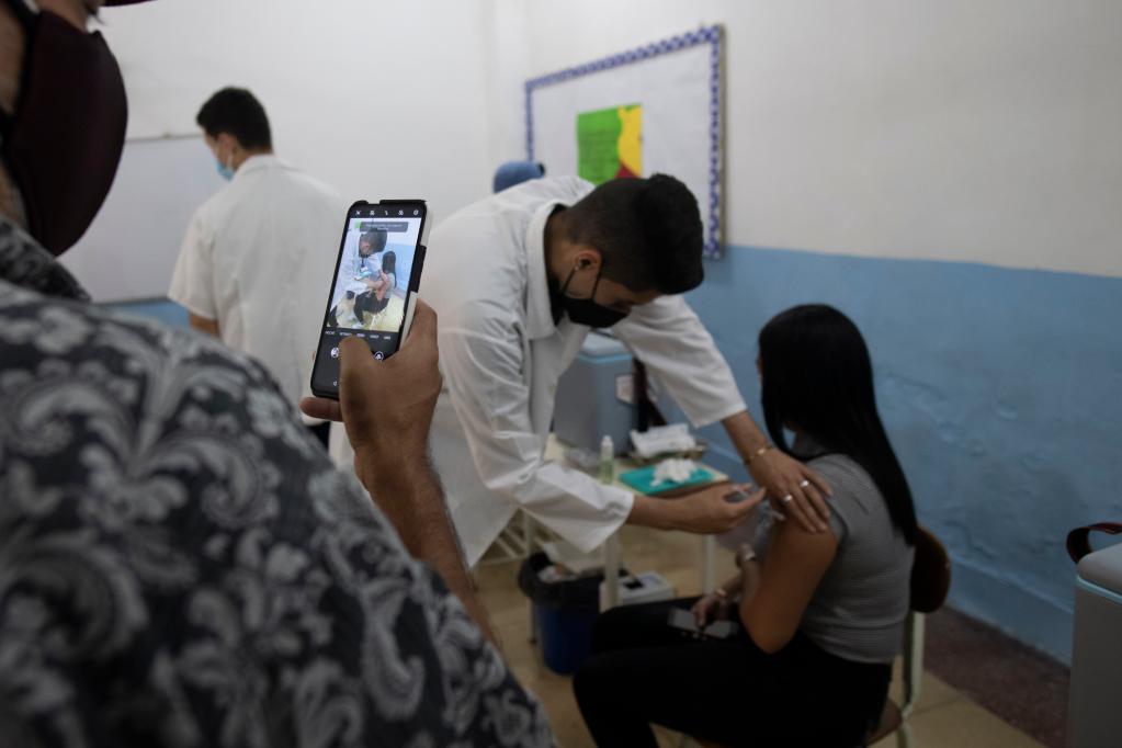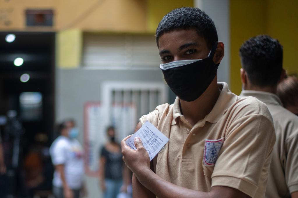 11月4日,在位于委内瑞拉首都市中心的“何塞·安洁尔·阿拉莫”中学,一名学生们在接种中国疫苗。萨尔戈多摄