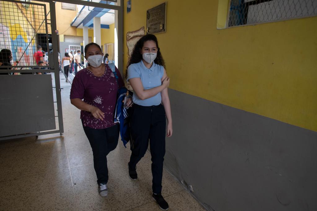 11月4日,在位于委内瑞拉首都市中心的“何塞·安洁尔·阿拉莫”中学,一名学生们接种完疫苗后离开。萨尔戈多摄