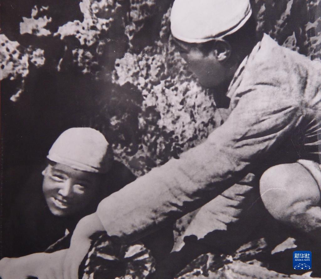 和战友一起烧炭的张思德(左)(资料照片)。新华社发