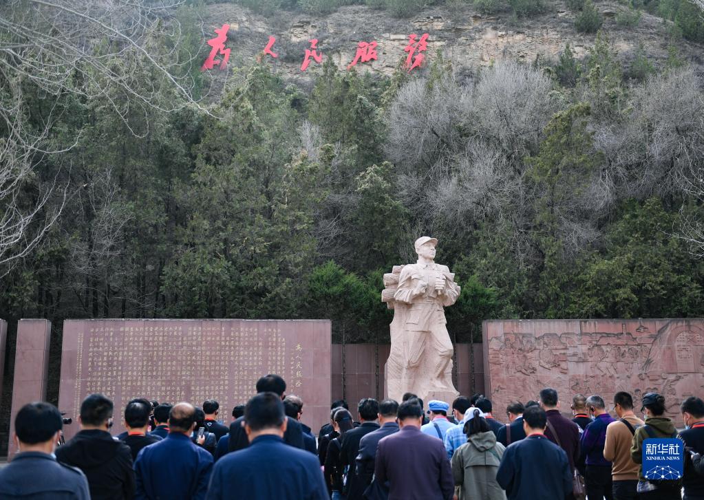 党员干部在陕西省延安市张思德广场进行现场教学活动(3月29日摄)。新华社记者 张博文 摄