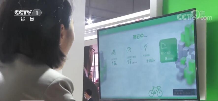 总台央视记者 朱慧容:我现在在进行互动体验,目标是让我身边的柱子全部变成绿色,这样就可以给我旁边的手机充电了,速度越快充电量也就越多。大家也可以看到,我旁边的屏幕上已经记录了我的运动数据,包括产生的能量以及减少的碳排放量。看到产生的能量在不停上升,我已经很努力了,但是现在这个柱子上还有三格没有变绿。