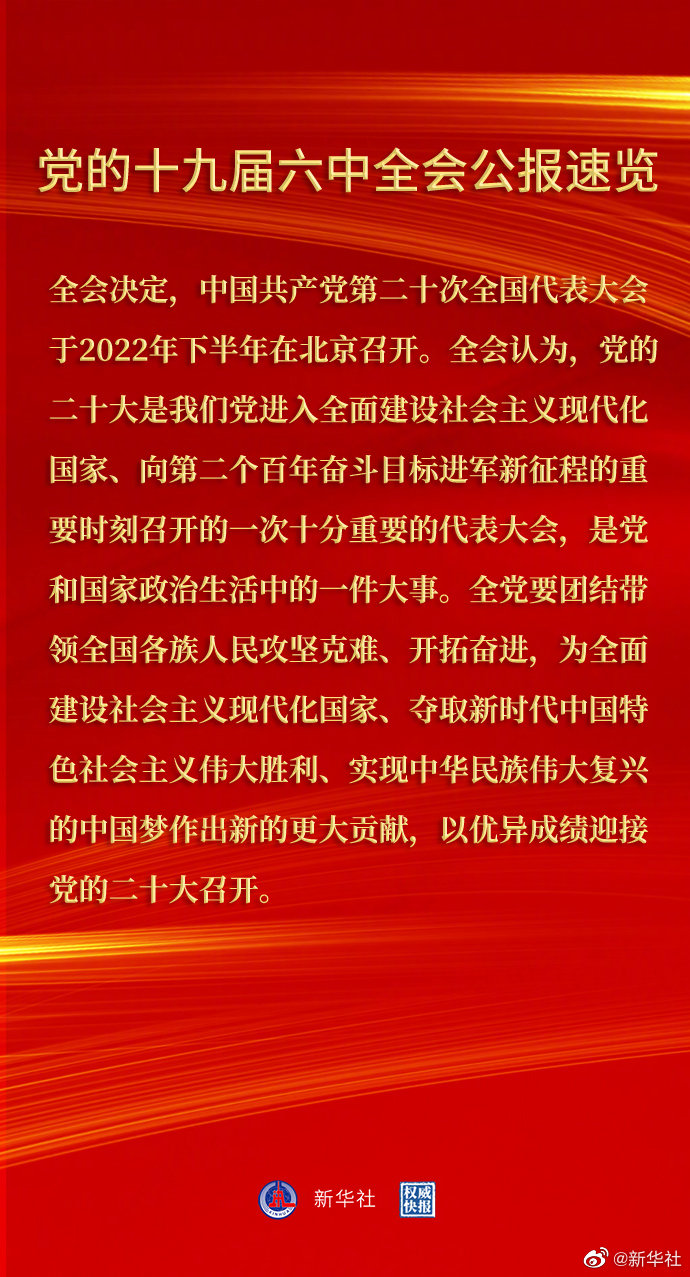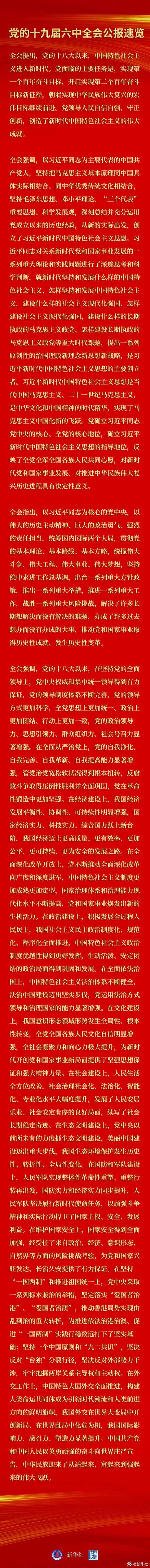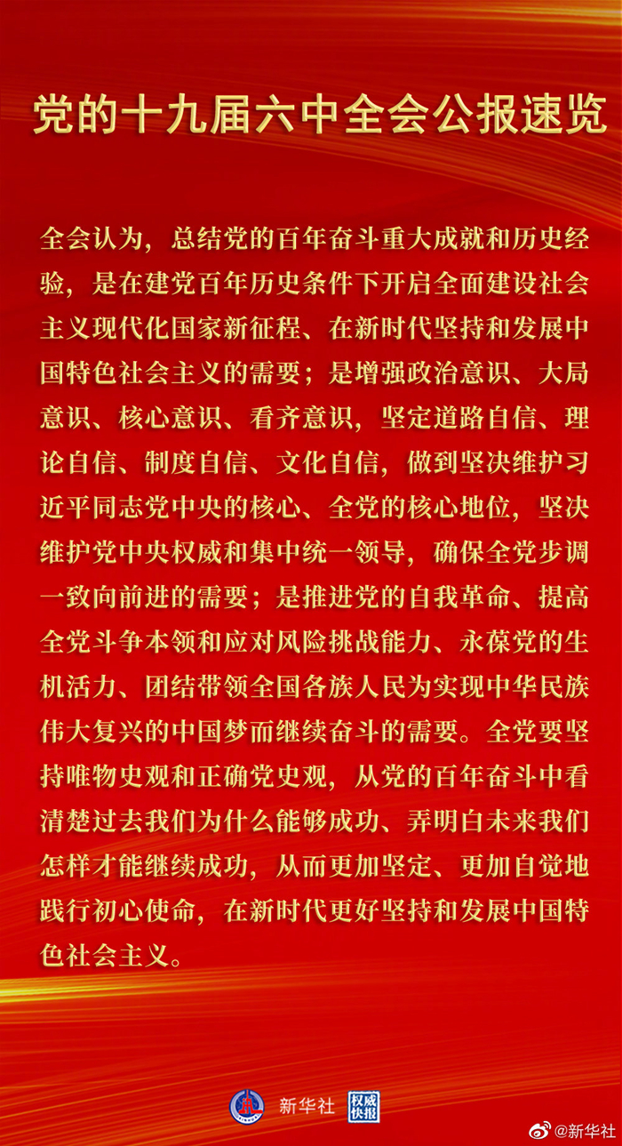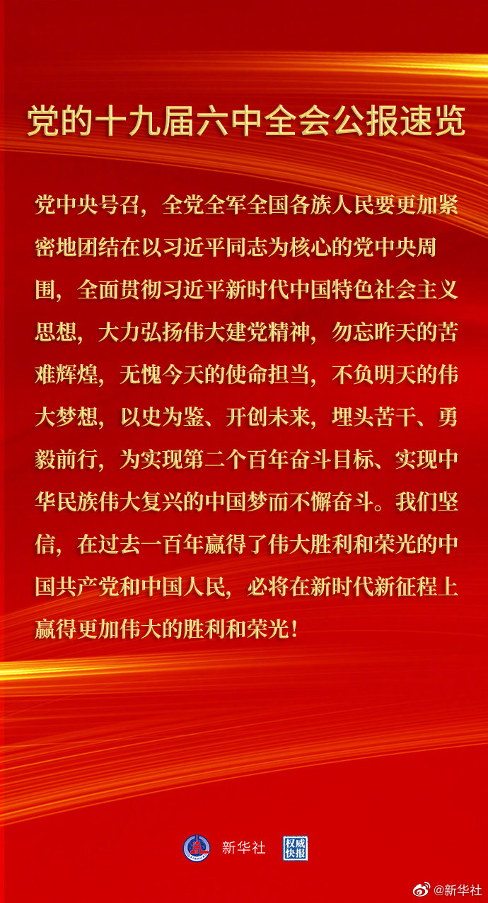 党的十九届六中全会公报速览