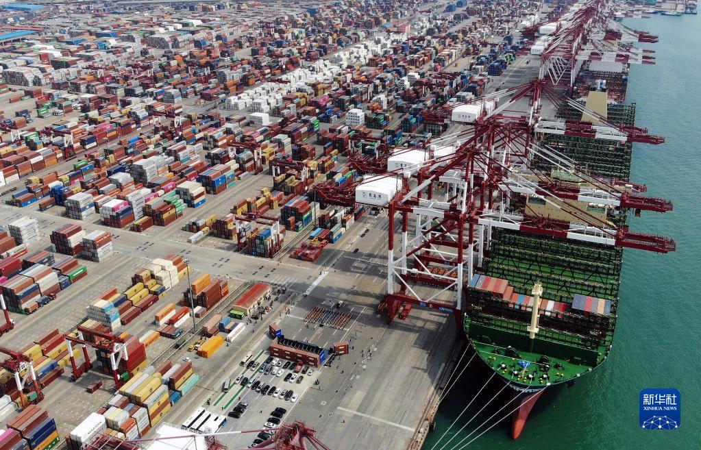 这是5月26日在海南洋浦经济开发区拍摄的洋浦国际集装箱码头(无人机照片)。新华社记者 蒲晓旭 摄