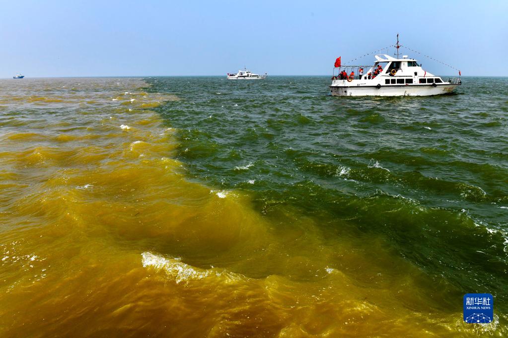 在山东省东营市黄河入海口,黄河汇入渤海,形成独特景观(5月13日摄)。新华社记者 郭绪雷摄