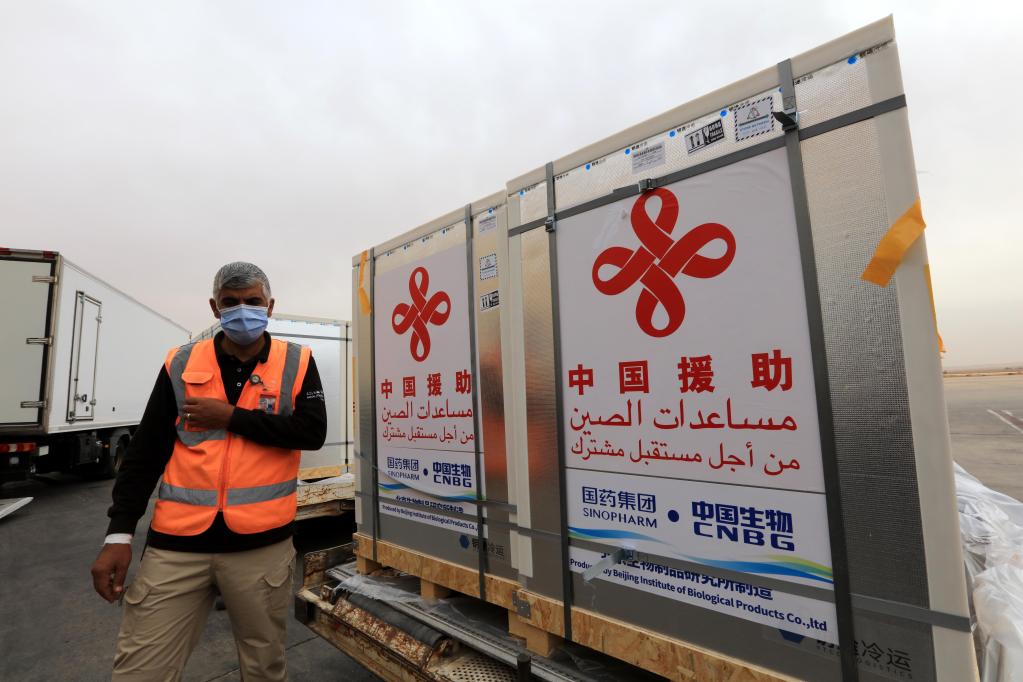 这是10月31日在约旦安曼的阿莉娅王后国际机场拍摄的中国援助的新冠疫苗。中国政府援助约旦第二批新冠疫苗交接仪式11月4日在约旦首都安曼的体育城疫苗接种中心举行。中国政府援助约旦的首批和第二批新冠疫苗分别于4月25日和10月31日运抵安曼。此外,约旦政府还从中国采购了部分疫苗。新华社发(穆罕默德·阿布·古什摄)