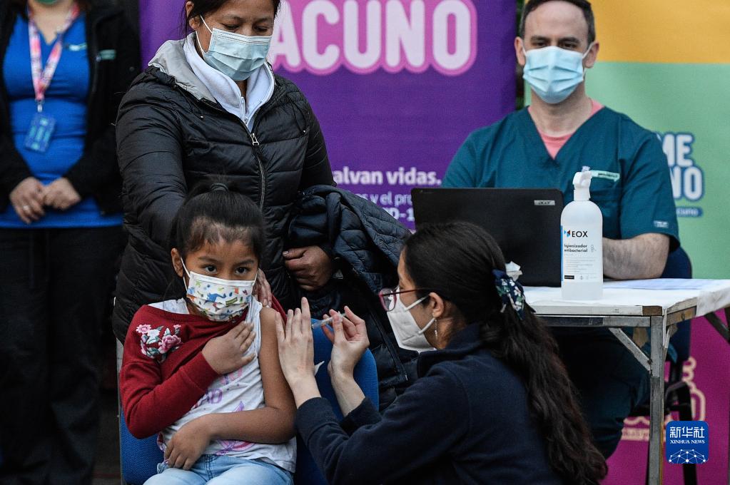 9月27日,一名儿童在智利首都圣地亚哥的普罗维登西亚学校接种科兴新冠疫苗。新华社发(豪尔赫·比列加斯摄)