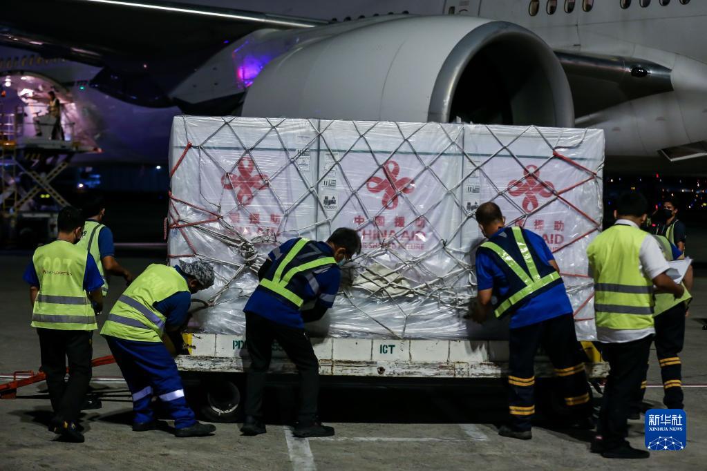 10月24日,工作人员在菲律宾马尼拉国际机场运输中国政府援助菲律宾的第四批新冠疫苗。新华社发(乌马利摄)
