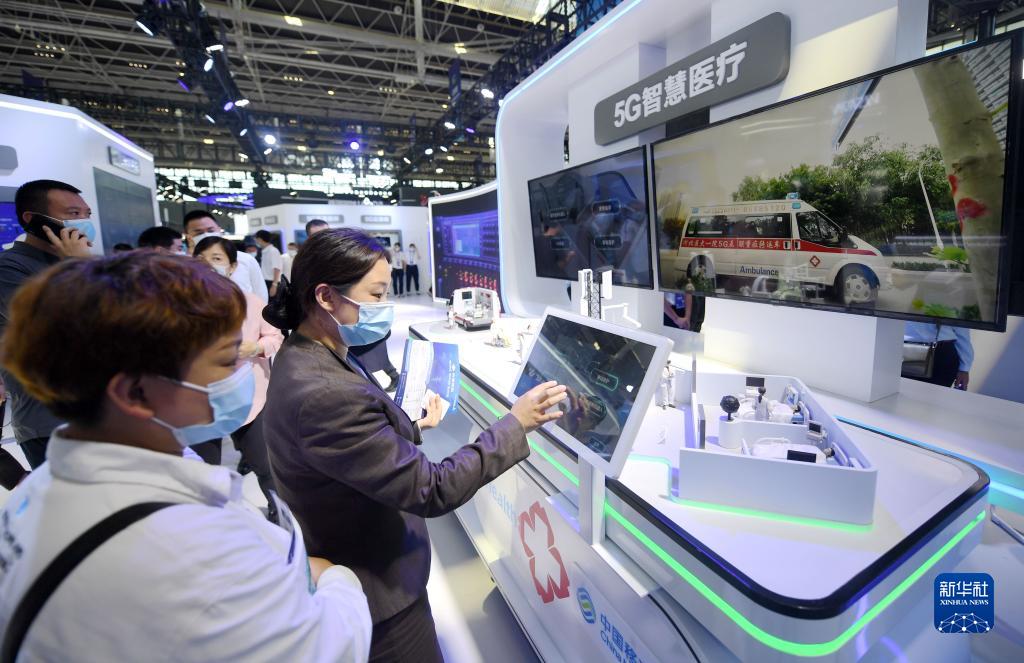 9月7日,参观者在2021中国国际数字经济博览会参观5G智慧医疗展台。新华社记者 王晓 摄