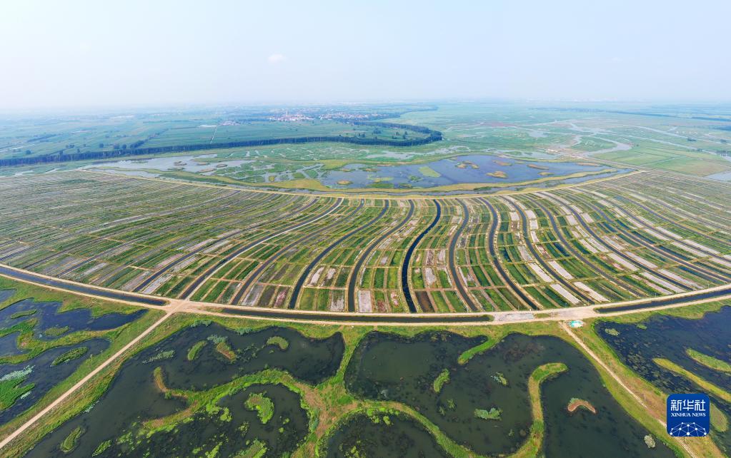 这是雄安新区府河河口湿地水质净化工程现场(2021年8月14日摄,无人机全景照片)。新华社记者 牟宇 摄