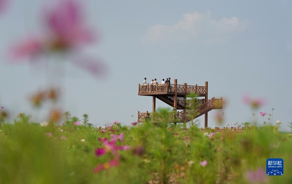 人们在藻苲淀退耕还淀湿地恢复工程项目区内参观(2021年8月14日摄)。新华社记者 牟宇 摄