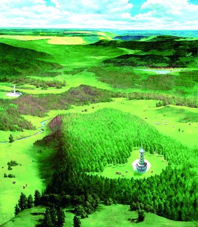 走进塞罕坝展览馆,一张建场初期的示意图直观描绘了当时恶化的生态:沙地距离北京直线距离只有180公里,平均海拔1000多米,而北京平均海拔仅40多米。有人比喻:相当于站在屋顶向院里扬沙子。作为曾经水草丰沛、森林茂密的天然名苑,经过清末的开围放垦、砍伐不断,到新中国成立初期,塞罕坝的原始森林已荡然无存。昔日的“美丽高岭”变成了林木稀疏、人迹罕至的茫茫荒原。