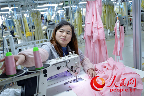 “县内的纺织服装企业有3千多家,其中规模以上企业109家,安排就业8万余人。”于都县纺织服装产业发展中心负责人丁有胜告诉记者,去年全行业产值实现525个亿,发展势头非常强劲。