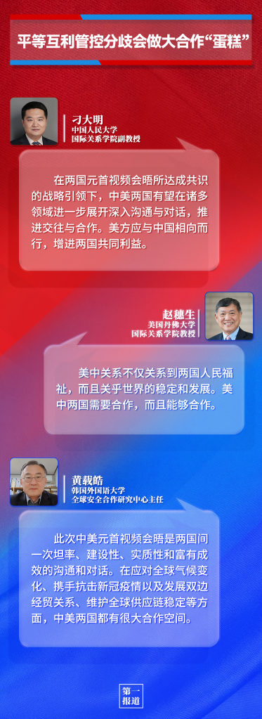 国家主席习近平11月16日上午同美国总统拜登举行视频会晤。此次会晤向中美两国和世界发出了强有力的积极信号,有利于增进双方相互了解,提升国际社会对中美关系的正面预期。