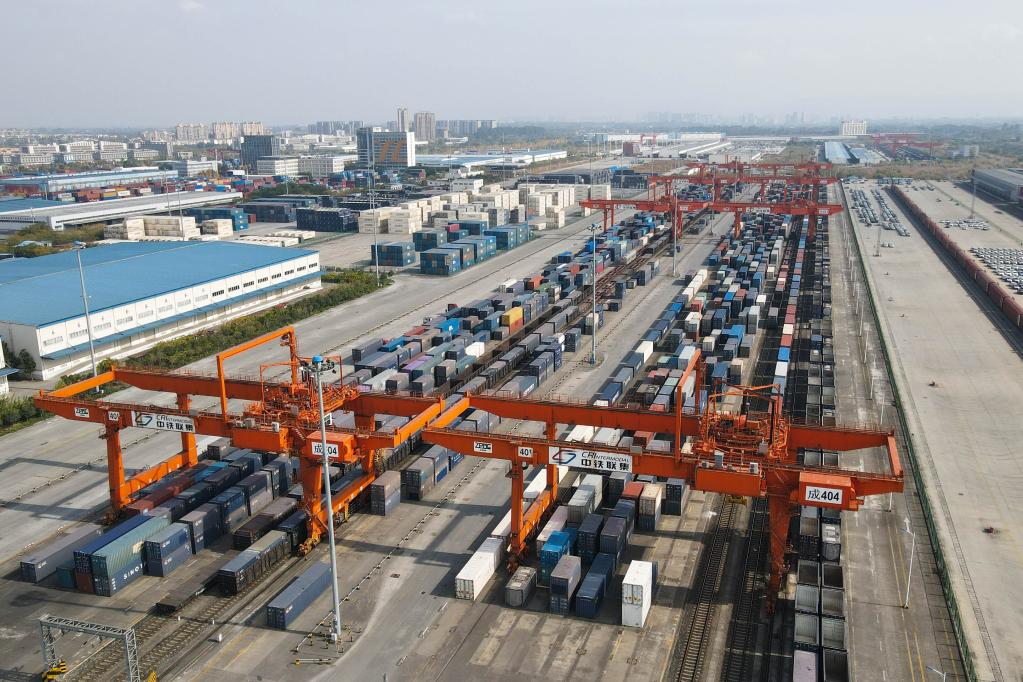 这是11月23日拍摄的四川省成都市青白江区的成都国际铁路港(无人机照片)。新华社记者胥冰洁摄
