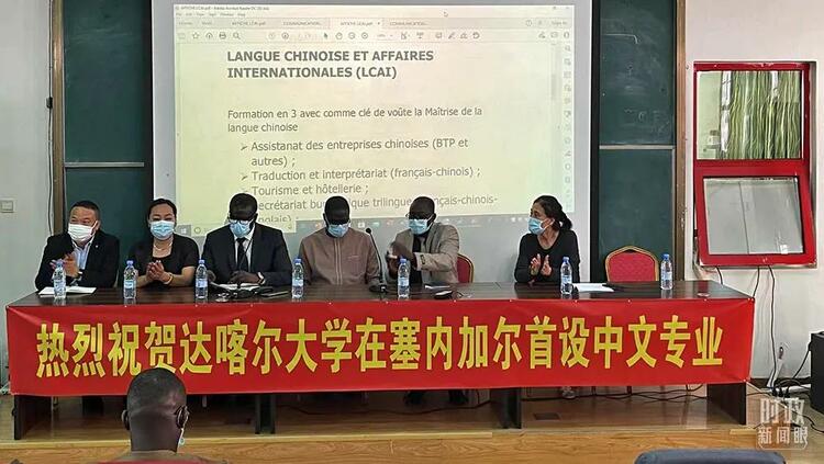 △2021年11月23日,塞内加尔达喀尔大学在孔子学院举行了中文专业推介暨新闻发布会,这标志着中文教育正式进入塞内加尔高等教育体系。(总台记者韩蓄拍摄)
