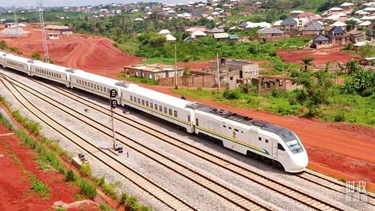 △2021年6月,由中企承建的尼日利亚拉伊铁路正式通车运营。这是列车穿过当地居民社区。(资料图)