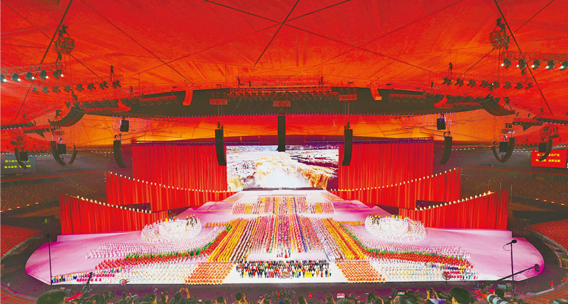 2021年6月28日晚,庆祝中国共产党成立100周年文艺演出《伟大征程》在国家体育场盛大举行。这是歌曲《领航》的演出现场。 新华社记者 邢广利/摄